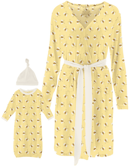 KicKee Pants Women's Mid Length Lounge Robe & Layette Gown Set - Wallaby Bees, S