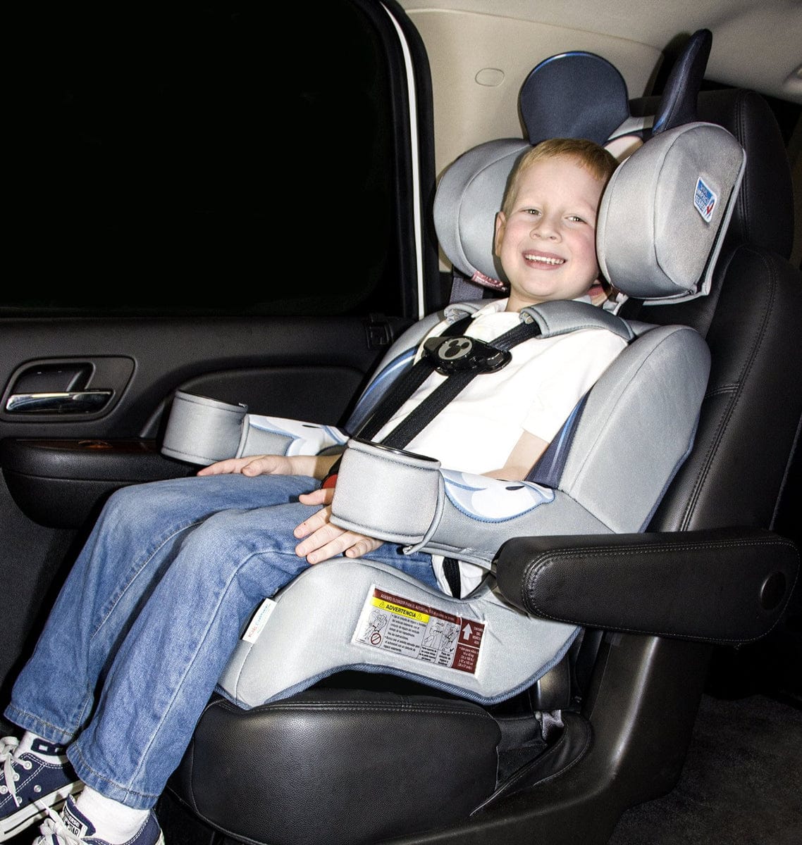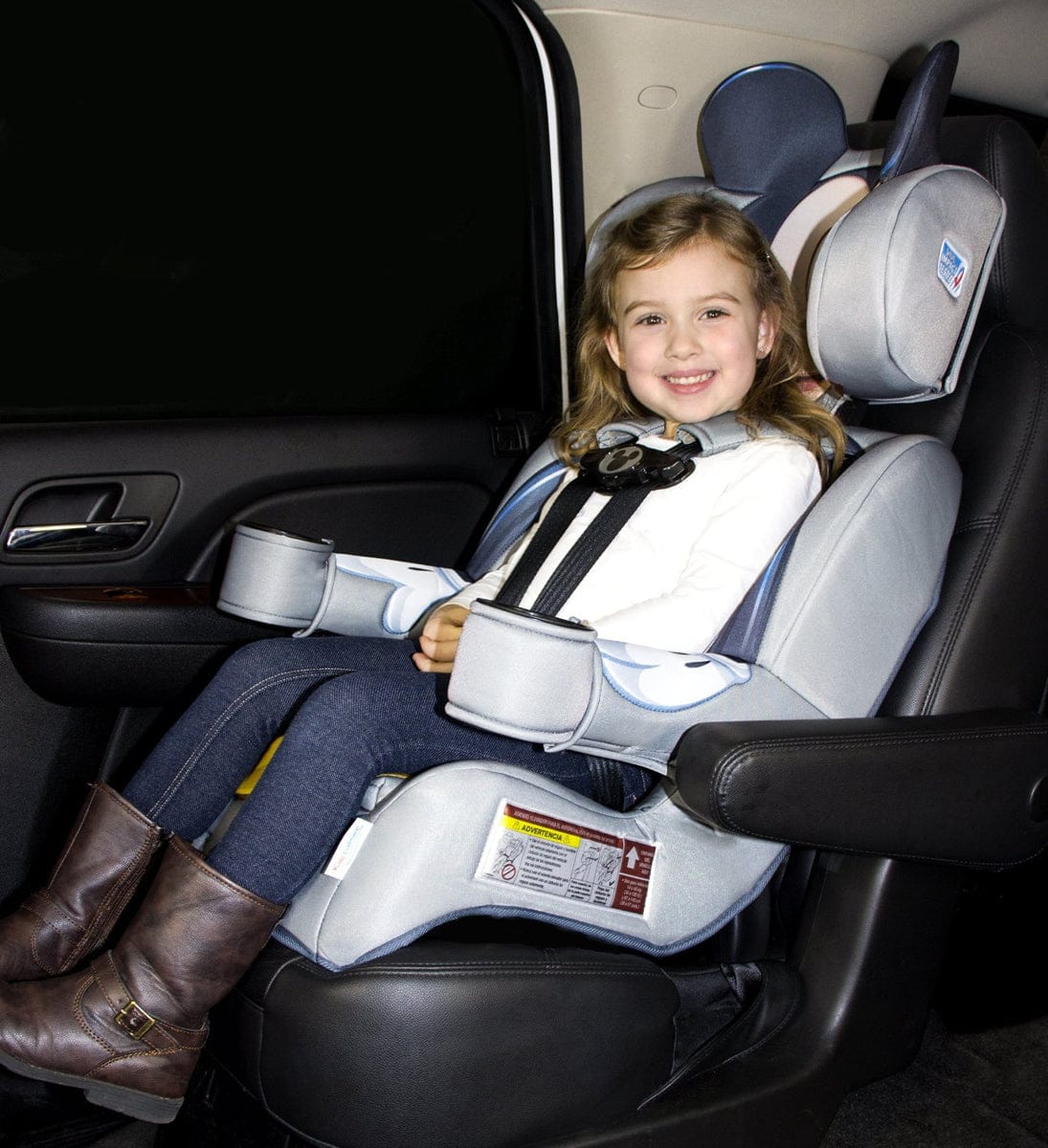 - Built-in belt guides correctly position vehicle seat belts for use with booster up to 100 lbs.