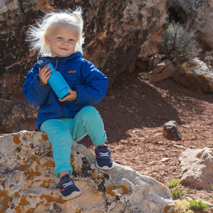 Our Kids' Classic 12 oz sippy cup and water bottle is designed with kids in mind. Spill proof sippy cap with dust cover, plus swivel metal loop so it can be easily attached to stroller or bag. Designed to play hard, our chip-resistant Klean Coat finish is durable and safe for people and planet. Narrow profile for easy gripping that fits little hands perfectly. Interchangeable caps for easy transition as kids grow up, providing a lifetime of use, from baby bottle to sippy to sports bottle at school.
