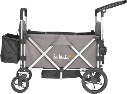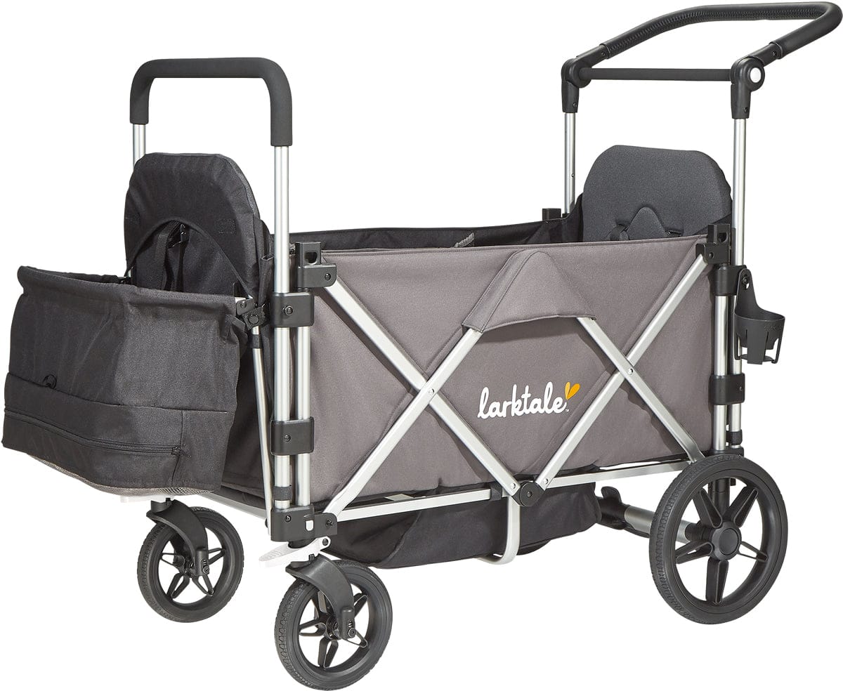 The adventure awaits! Designed for growing kids with places to go, the Larktale caravan™ has interior seating roomy enough for two passengers. The easy maneuverability puts even more activities in play such as sporting events, outdoor festivals, camping, and the beach. And when your little one is tuckered out, only the caravan™ offers unique patent pending reclining seats. You can also flip one seat forward into a flat base position to haul even more essentials on your outing or let your little ones stretch their legs.