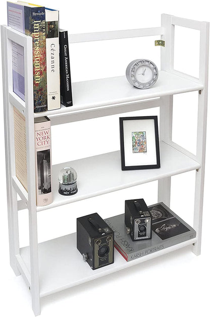 You can use this 3 Shelf Folding Bookcase to showcase your favorite vases, artworks or photos. This simple wood bookcase is a great storage solution that can be moved around your home to accommodate your decor displaying needs. Store fragile pieces on higher shelves, and mix and match different types of items on the same shelf for a more balanced look. Perfect for displaying framed photos of fondly-remembered vacations and unforgettable wedding receptions and rows of your favorite reads in the den.