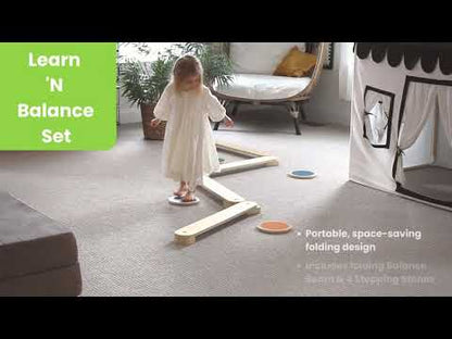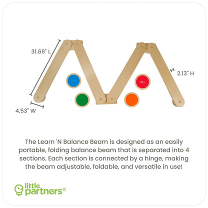 Balance fun and spatial learning with the Little Partners Learn N' Balance set, complete with 4 stepping stones! Develop your little one's balance safely as you encourage self-esteem, spatial development, and learning about colors. You can also add our three new Step 'N Learn Stepping Stones collections - Shapes, Colors, and Numbers - for more learning fun! The Learn N' Balance Beam is designed as an easily portable, folding balance beam that is separated into 4 sections. Each section is connected by a hinge, making the beam adjustable, foldable, and versatile in use. Ages 18 months up to 4 years, up to 100 lbs.