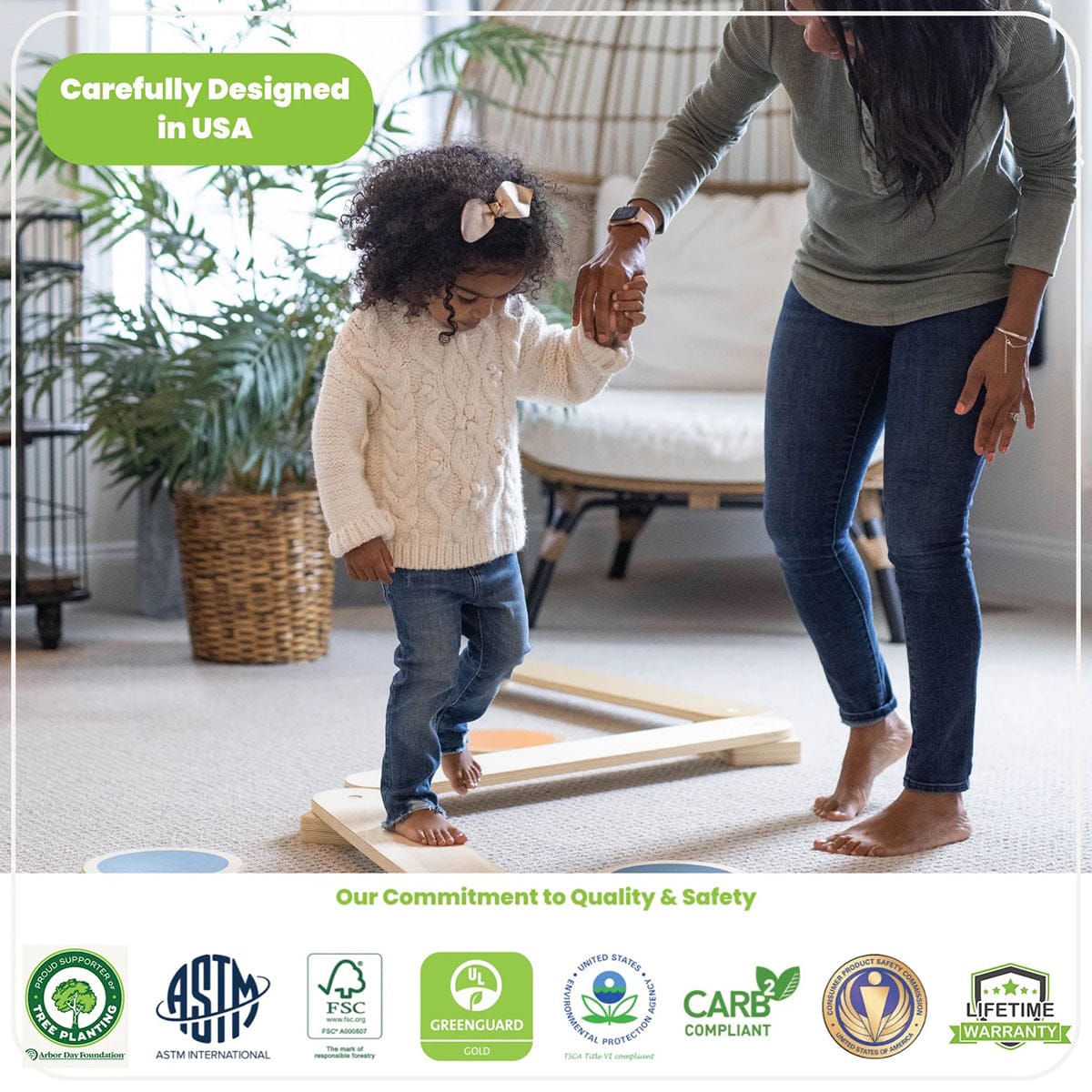 - Develop your little one's balance safely as you encourage self-esteem, spatial development, and learning about colors