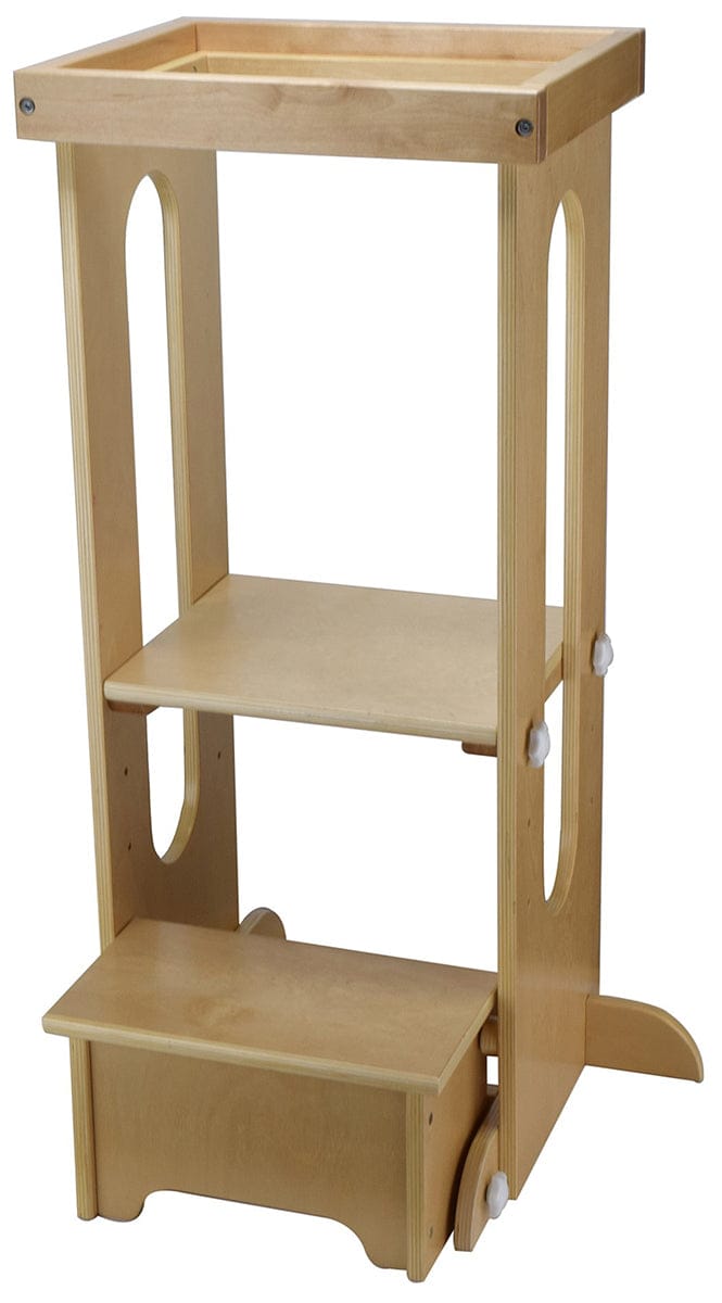 The Explore N Store Learning Tower™ has been designed with the guiding principles of hands-on learning in mind, bringing children to counter height to encourage exploration, independence and interaction with parents and older siblings. Its compact profile makes it a perfect fit under kitchen counters and islands, while its adjustable design grows to meet your child’s needs.