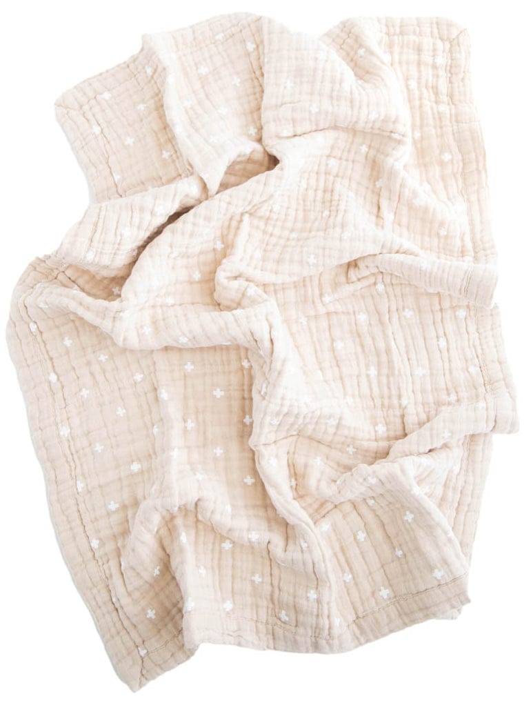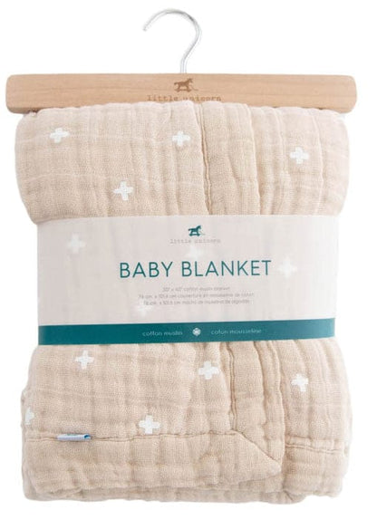 Little Unicorn Cotton Muslin Baby Blanket - Taupe Cross