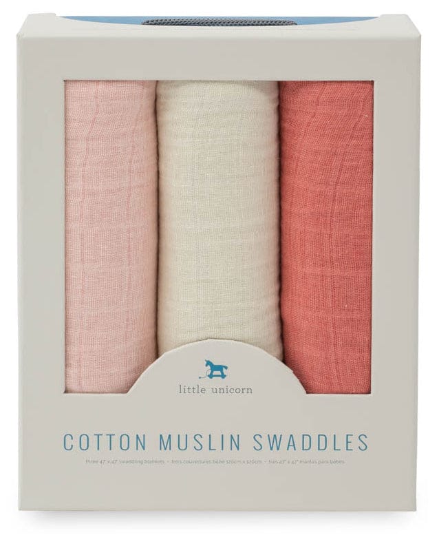 Little Unicorn Cotton Muslin Swaddle 3 Pack - Rose Petal Set