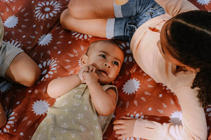 Our mid-size blanket boasts a larger footprint for both outdoor and indoor adventures. Take it to the beach or for a picnic lunch, even lay it under a sensory bin for mess-free play. Wipeable, water-resistant fabric makes for quick cleanups and the easy fold makes set up and pack up effortless. This blanket deserves to go everywhere with you!