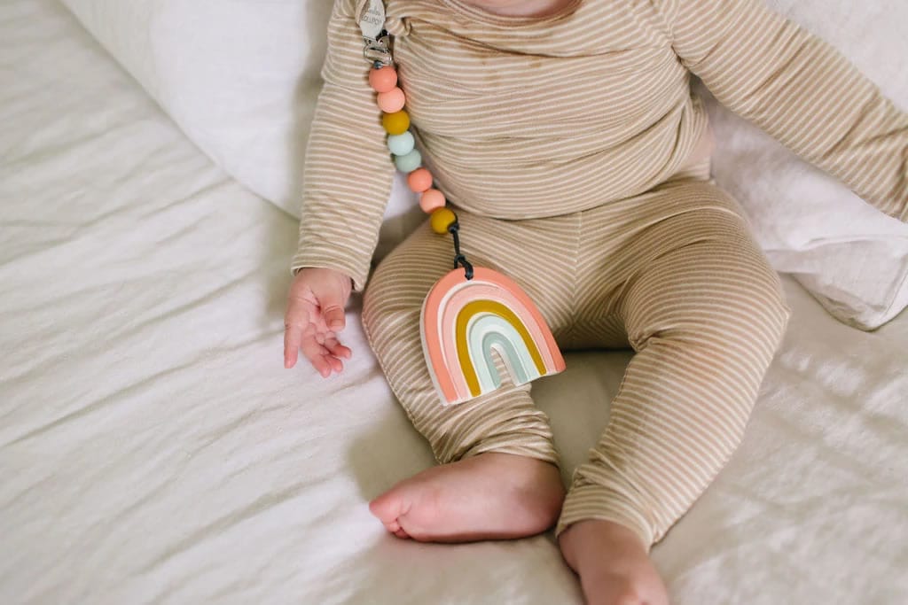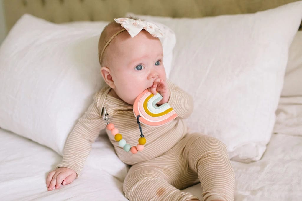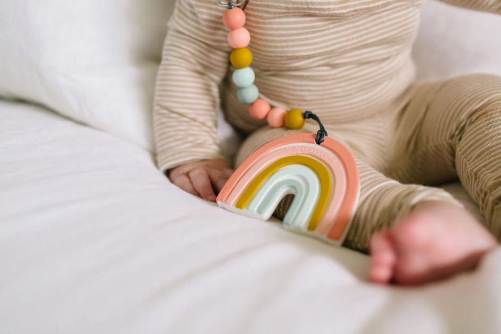 Loulou Lollipop Silicone Teether with Clip - Pastel Rainbow