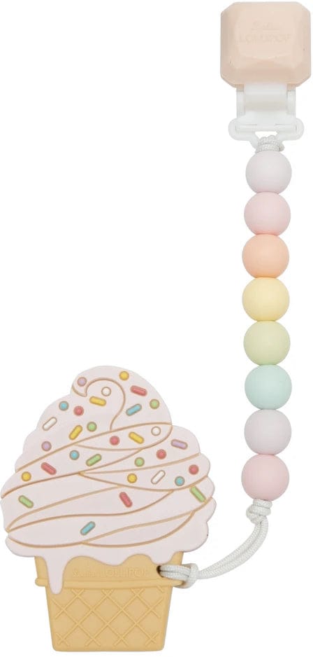 Loulou Lollipop Silicone Teether with Gem Clip - Strawberry Ice Cream