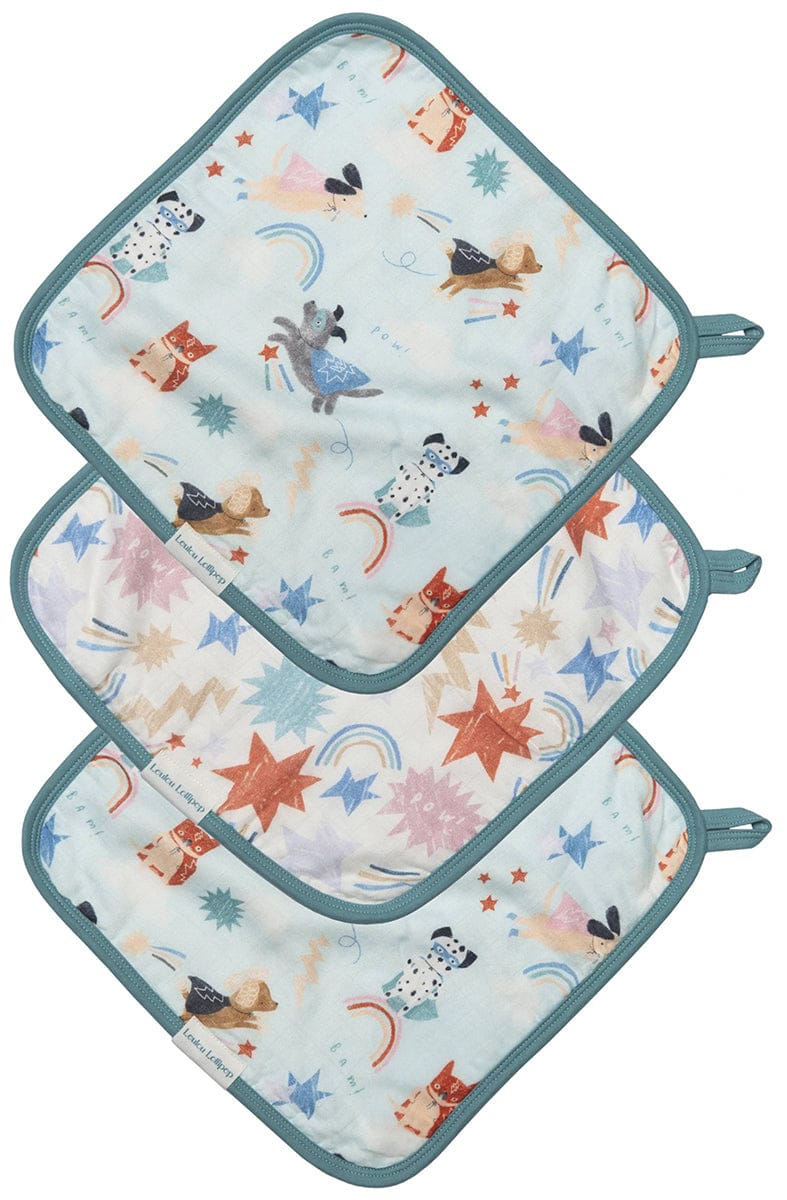 Loulou Lollipop Washcloth 3-Piece Set - Superhero Dog