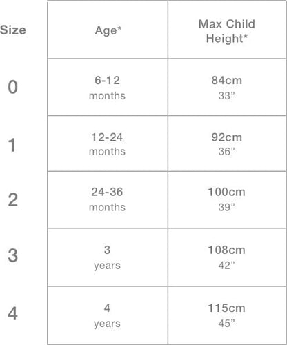 - Available in 5 sizes: 6 months, 12 months, 24 months, 3 years and 4 years