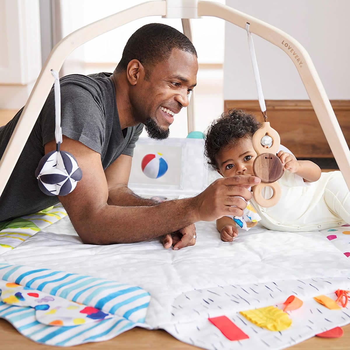 - The Play Gym is OEKO-TEX® STANDARD 100 certified and tested to be baby safe; materials include FSC-certified wood, polyester, silicone, and organic cotton