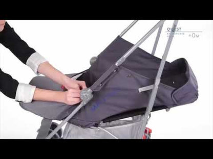 A favorite among busy parents who need a compact yet full-featured stroller. Ideal for newborn babies and children up to 55lb. Quest features a full recline 4-position seat with convenient one-handed adjustment, extendable leg rest, and built-in Newborn Safety System.