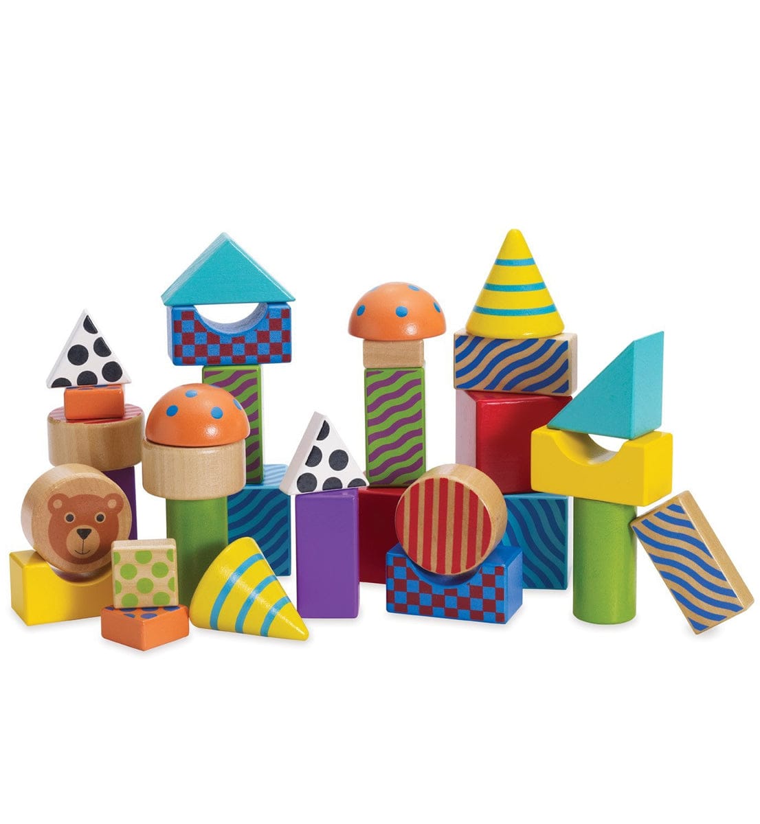 Creative play is easy with the Create & Play Pattern Blocks set. Block set includes 32 colorfully patterned wooden blocks. Varying shapes, sizes and unique color schemes make for extraordinary building creations. Age 12+ months.