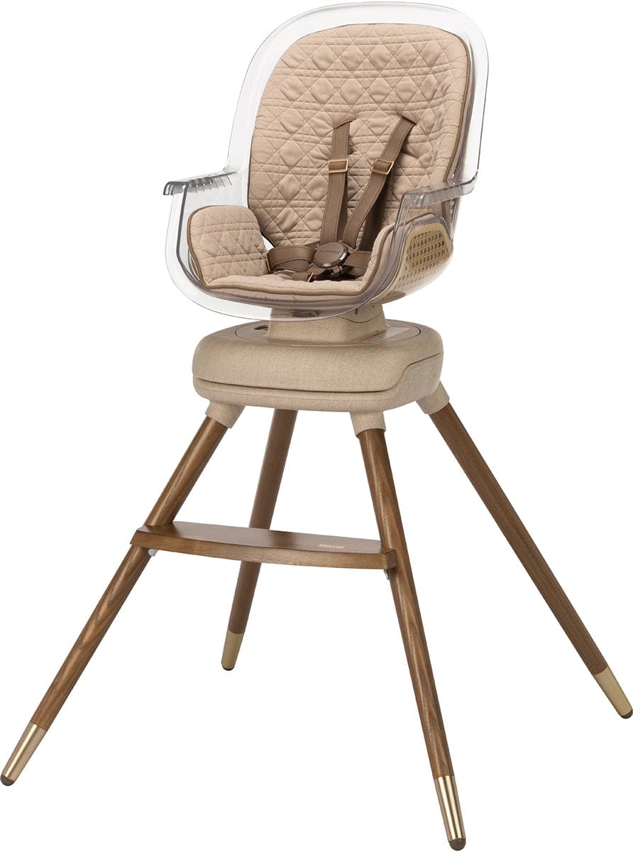 As part of the Maxi-Cosi Kindred Collection, our Kiskadee 360° Rotating High Chair reflects a timeless design crafted with premium materials to complement your home’s décor. Made with soft, luxe fabrics and tapered Ash wood legs with specially finished metals, Kiskadee’s inspired design captures classic elements—paying special attention to providing comfort for your little one.