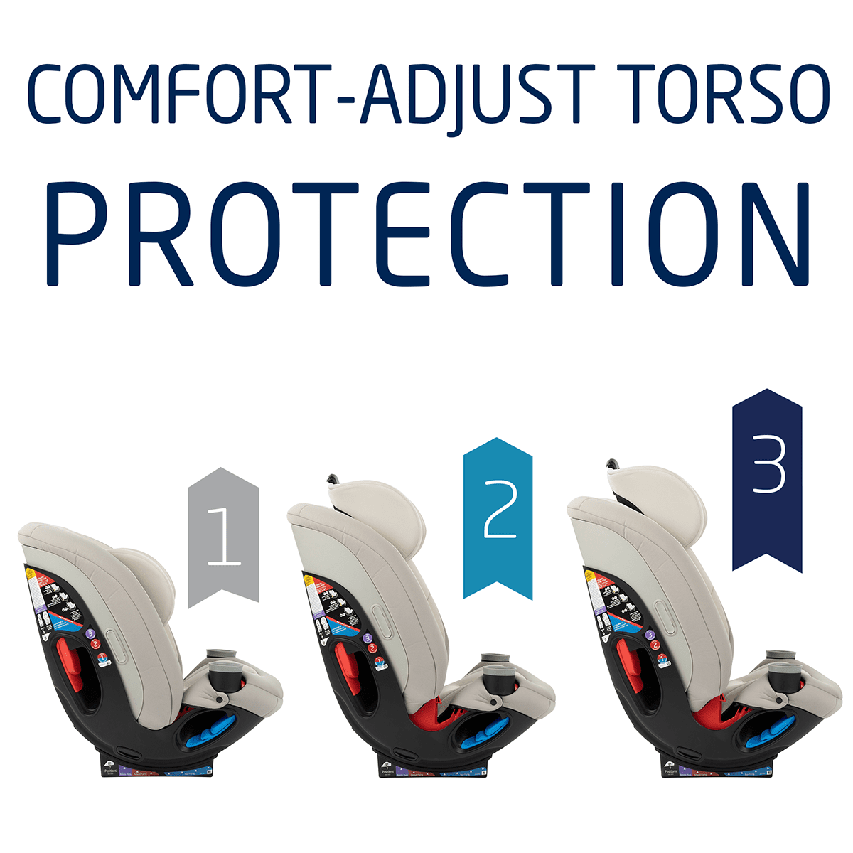 Side impact protection is built into the headrest to cushion impacts, and to provide a soft pillow of comfort. Children grow at different rates so for the first time you can adjust the side up or down to maximize side impact protection.