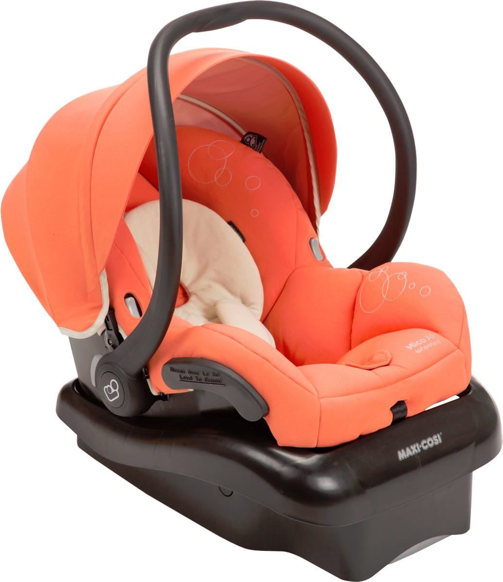 The Maxi-Cosi Mico AP infant car seat's lightweight design makes transferring from your car to either a Quinny or Maxi-Cosi stroller a breeze. The lightest premium infant car seat just got better! Now features Air Protect Side Impact Protection. The Mico AP infant car seat has everything for you and your child, including a flip-out canopy visor, adjustable base and new premium softgoods. The Mico AP is suitable for infants from 5-22 lbs. and 19-29".