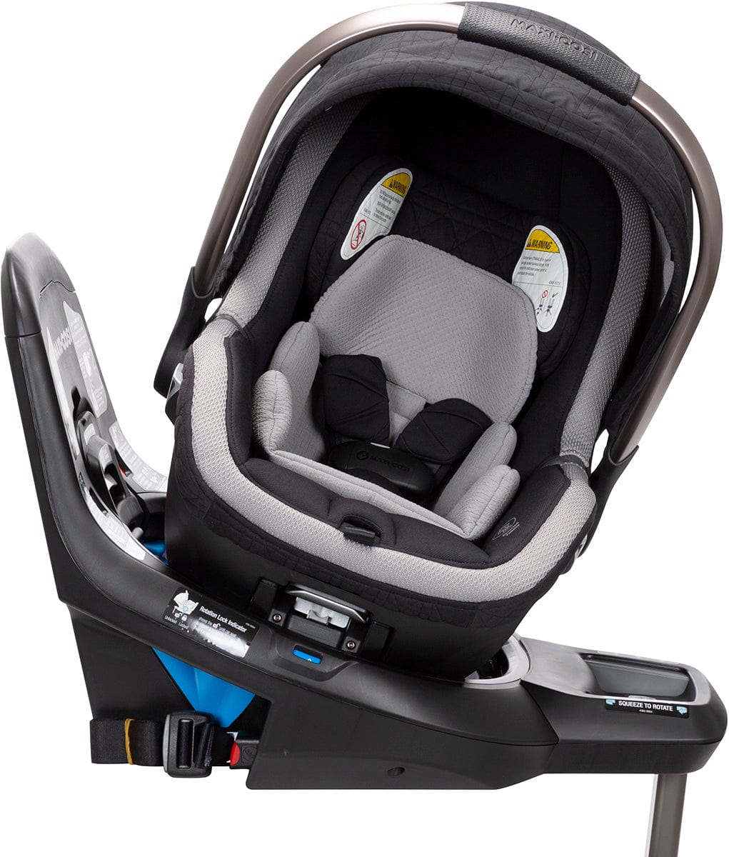 As part of the Maxi-Cosi Kindred Collection, the Peri™ 180° Rotating Infant Car Seat beautifully combines comfort and style with features you’ll love, like FlexiSpin, our rotation technology that makes getting your little one in and out of their car seat easier than ever and reduces back strain. Peri is also the lightest rotating infant car seat available at under 8 lbs.*, so carrying it is a breeze. For rear-facing babies from 4–30 lbs. and up to 32".