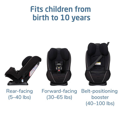 - All-in-one convertible car seat for kids from birth to 10 years (5-100 lbs.)