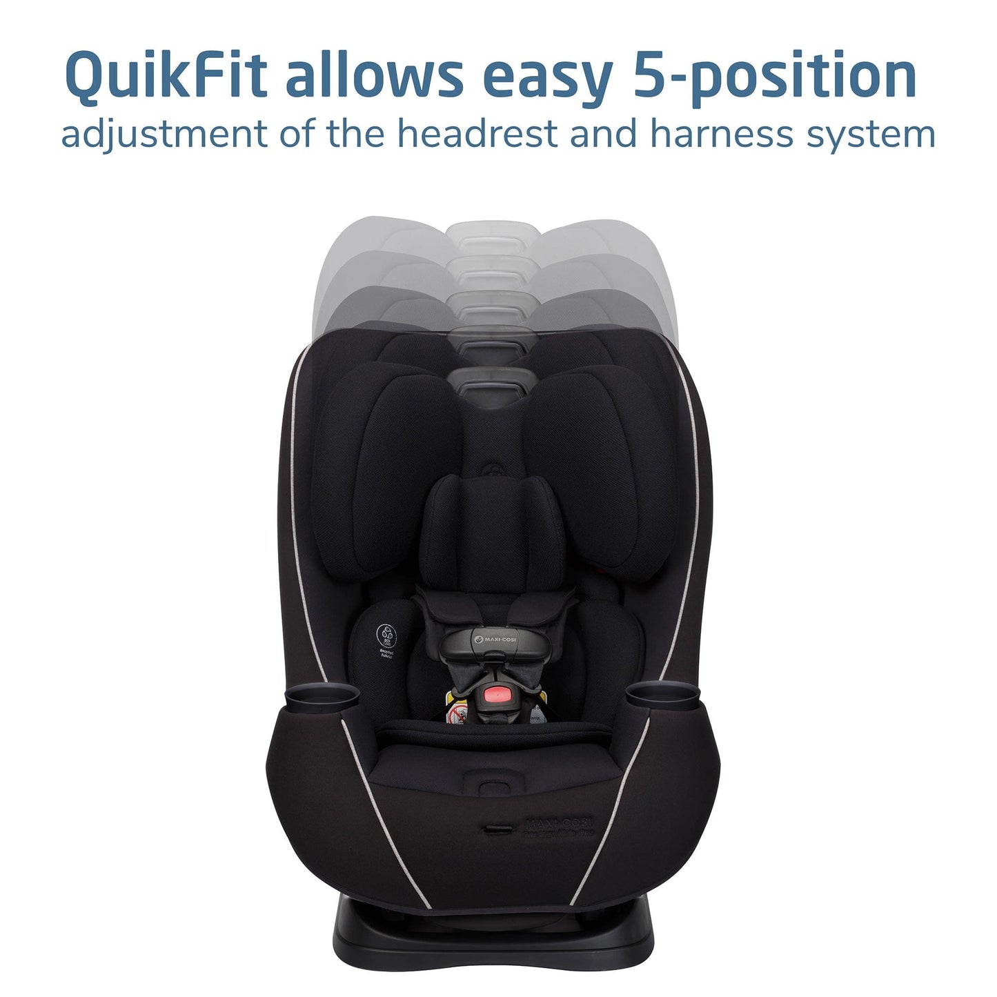 - QuikFit allows easy adjustments of the integrated headrest and harness system without rethreading the harness