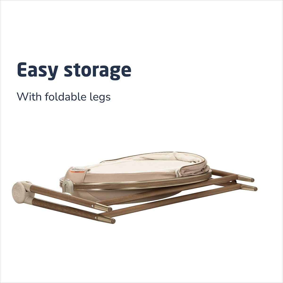 As part of the Maxi-Cosi Kindred Collection, our Sibia Bassinet reflects a timeless design crafted with premium materials to complement your home’s décor. Made with soft, luxe fabrics and tapered Ash wood legs with specially finished metals, Sibia’s inspired design captures classic elements and combines them with modern technology—paying special attention to providing comfort for your little one.