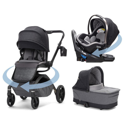 This Maxi-Cosi bundle comes with the Tana 360° Rotating Modular Stroller, Peri™ 180° Rotating Infant Car Seat and Bassinet. Pairing the pieces together creates a travel system that can be used from birth.
