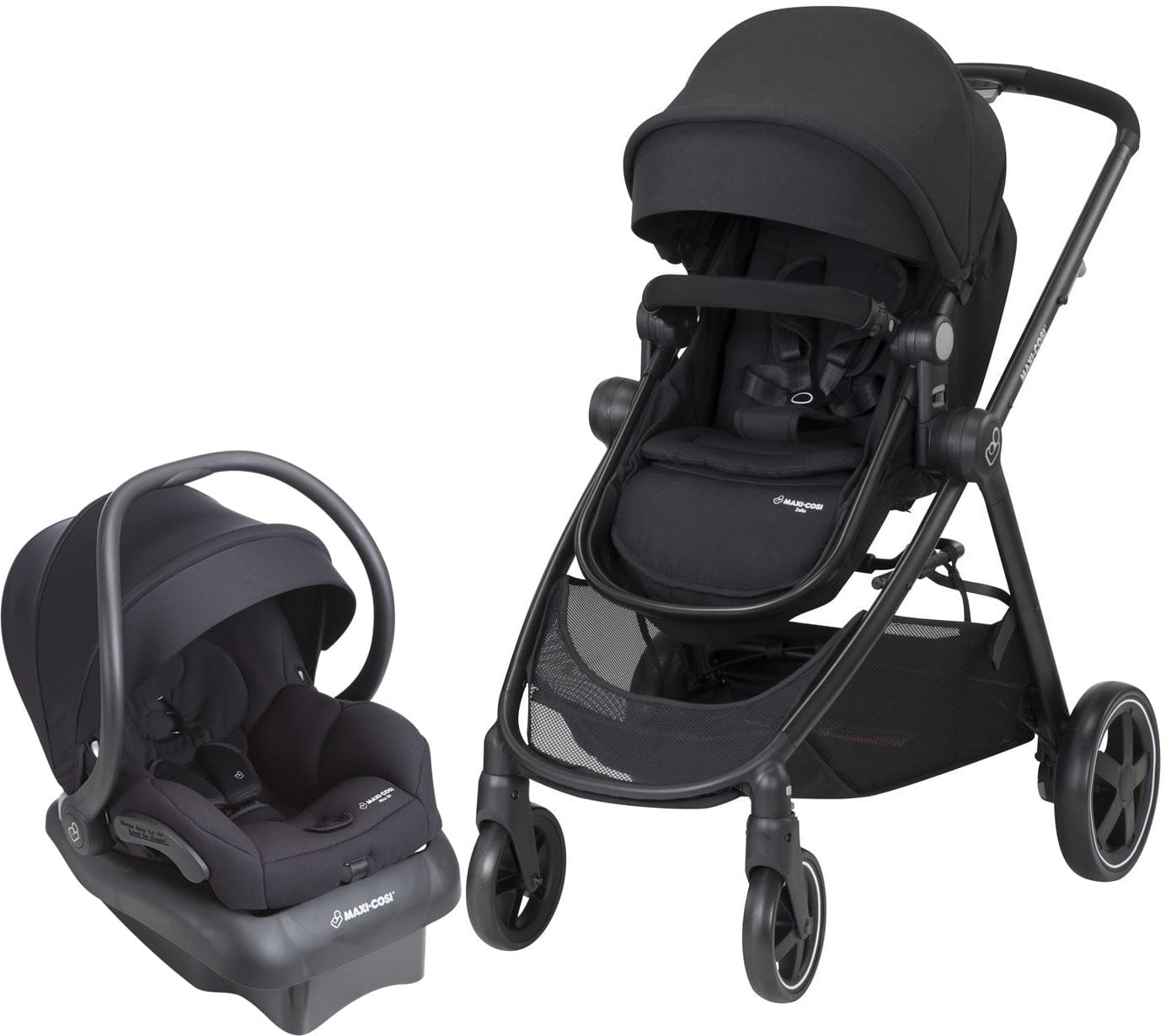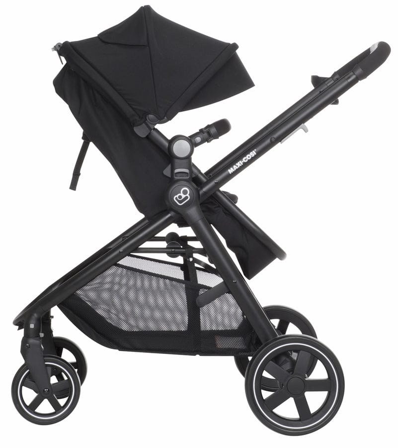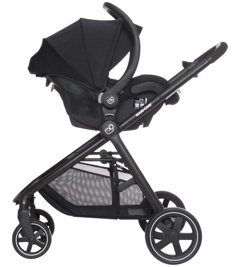 FROM-BIRTH TRAVEL SOLUTION With the included Maxi-Cosi Mico 30 infant car seat and a seat that converts into a cozy bassinet, the Zelia travel system is a complete and convenient newborn travel solution. REVERSIBLE SEAT The Zelia seat reverses quickly and easily so baby can bond with you or explor the world. ADJUSTABLE HANDLEBAR The height-adjustable handlebar ensures a comfortable push and easy steering for parents. COMPACT FOLD Folds quickly and easily, and stands on its own when folded. The new Zelia stroller by Maxi-Cosi will give you and your baby the confidence to embrace the future and let you enjoy everything urban life has to offer. Zelia?s seat transforms into a bassinet so it is the perfect 2-in-1 stroller for cool, relaxed city living. It's suitable from birth to 3.5 years. In just 2 clicks, attach the Maxi-Cosi baby car seat to move easily between street and car. This 2-in-1 stroller is perfect for you if... You're looking for the best compact stroller that will fit into a small apartment without compromising on baby?s comfort. You live in town or in the suburbs. You love clever equipment that takes up the least amount of space in your life but offers best-in-class comfort for your newborn. The new Zelia is the most intuitive, from-birth, 2-in-1, compact urban stroller on the market. Baby will enjoy the comfiest ride in the bassinet and you'll love the smart 1-hand 'portfolio' folding and light weight of this stroller. Best-in-class comfort and safety for baby: Comfortable seat and inlay Canopy with peekaboo window and visor Full reclining seat with lie-flat position Integrated bassinet in 2 steps Seat adjusts to parent-facing or road-facing in 2 clicks Maxi-Cosi 5-point harness Removable bumper bar Easy to use for parents: Flexible from-birth travel system Folds without bending Stands upright when folded Easy to steer with height-adjustable handlebar Lockable swivel wheels Rear-wheel suspension Shopping basket included Easy braking system Washable stroller cover Mico 30 Infant Car Seat Happy travels are ahead with the Maxi-Cosi Mico 30. The lightest infant car seat* in its class, the ergonomic handle provides extra comfort for parents while carrying this lightweight seat. Transferring from the stay-in-car base to a Maxi-Cosi, Quinny, or other premium stroller is a breeze, making the Mico 30 infant seat a great solution for parents looking for a complete travel system they can use from birth. The Mico 30?s seat features self-wicking fabric that deodorizes and draws liquids away from the skin to help keep baby dry and comfortable during the ride. The innovative seat pad design allows for removal within seconds; no rethreading of harnesses required! The seat fabrics are also both machine washable and dryer safe, making removal for a thorough cleaning quicker and easier than other car seats. The Mico 30 includes an adjustable base with LATCH for a better fit in your car. The comfortable premium fabrics and padded 5-point harness covers keep baby secure and cozy during the ride, and the included Cozi-Dozi? head insert is perfect for the extra support needed by infants. Each Mico 30 comes complete with a multi-position sun canopy with a flip out visor to help protect baby?s sensitive eyes from bright lights. Give your family happy travels with a Maxi-Cosi Mico? 30 infant car seat that makes each journey with baby easier and safer! Rear-facing from 5-30 pounds and up to 32? Lightest premium infant car seat available* Side Impact Protection Includes a convenient stay-in-car adjustable base Self-wicking fabric: deodorizes and draws liquids away from the skin to help keep baby dry and comfortable Easily removable fabrics for cleaning; innovative design allows for removal without rethreading harness! Easiest to clean: machine washable and dryer safe fabric Flip-out visor on canopy for extra protection when needed Includes Cozi-Dozi? infant support for smaller babies One click LATCH system, with easy click-in for better installation Installs easily without the base, making it perfect for city trips in a cab Adapters to use Mico 30 as travel system included with compatible Maxi-Cosi and Quinny strollers. Adapters for many other premium strollers available from the stroller manufacturer *When compared to similarly priced infant car seats with the same weight range as of August 2015. Specifications: Open Dimensions: 45? H x 25.8? W x 37? D Folded Dimensions: 34? H x 25.5? W x 17? D Stroller Weight: 21.5 lbs Car Seat Weight: 9 lbs Shipping Dimensions: 34.63?H x23?W x 27.38?D Shipping Weight: 54.65