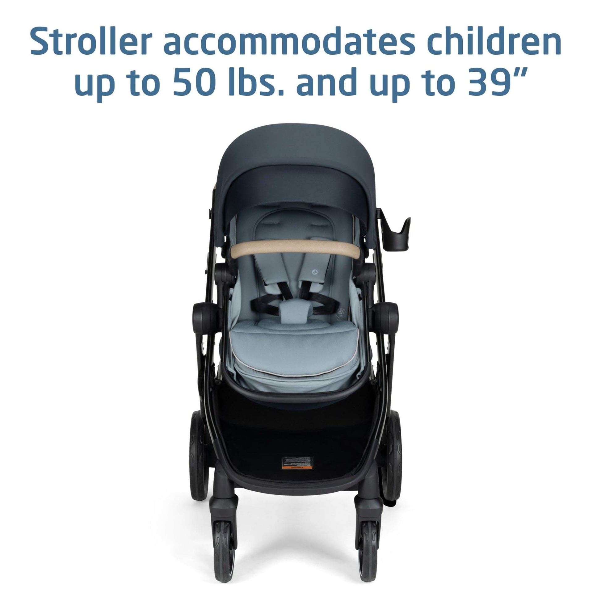 - Stroller accommodates children up to 50 lbs. or 39".