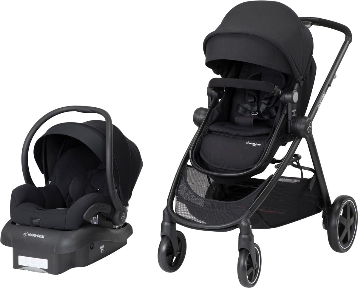 FROM-BIRTH TRAVEL SOLUTION With the included Maxi-Cosi Mico 30 infant car seat and a seat that converts into a cozy bassinet, the Zelia travel system is a complete and convenient newborn travel solution. REVERSIBLE SEAT The Zelia seat reverses quickly and easily so baby can bond with you or explor the world. ADJUSTABLE HANDLEBAR The height-adjustable handlebar ensures a comfortable push and easy steering for parents. COMPACT FOLD Folds quickly and easily, and stands on its own when folded. The new Zelia stroller by Maxi-Cosi will give you and your baby the confidence to embrace the future and let you enjoy everything urban life has to offer. Zelia?s seat transforms into a bassinet so it is the perfect 2-in-1 stroller for cool, relaxed city living. It's suitable from birth to 3.5 years. In just 2 clicks, attach the Maxi-Cosi baby car seat to move easily between street and car. This 2-in-1 stroller is perfect for you if... You're looking for the best compact stroller that will fit into a small apartment without compromising on baby?s comfort. You live in town or in the suburbs. You love clever equipment that takes up the least amount of space in your life but offers best-in-class comfort for your newborn. The new Zelia is the most intuitive, from-birth, 2-in-1, compact urban stroller on the market. Baby will enjoy the comfiest ride in the bassinet and you'll love the smart 1-hand 'portfolio' folding and light weight of this stroller. Best-in-class comfort and safety for baby: Comfortable seat and inlay Canopy with peekaboo window and visor Full reclining seat with lie-flat position Integrated bassinet in 2 steps Seat adjusts to parent-facing or road-facing in 2 clicks Maxi-Cosi 5-point harness Removable bumper bar Easy to use for parents: Flexible from-birth travel system Folds without bending Stands upright when folded Easy to steer with height-adjustable handlebar Lockable swivel wheels Rear-wheel suspension Shopping basket included Easy braking system Washable stroller cover Mico 30 Infant Car Seat Happy travels are ahead with the Maxi-Cosi Mico 30. The lightest infant car seat* in its class, the ergonomic handle provides extra comfort for parents while carrying this lightweight seat. Transferring from the stay-in-car base to a Maxi-Cosi, Quinny, or other premium stroller is a breeze, making the Mico 30 infant seat a great solution for parents looking for a complete travel system they can use from birth. The Mico 30?s seat features self-wicking fabric that deodorizes and draws liquids away from the skin to help keep baby dry and comfortable during the ride. The innovative seat pad design allows for removal within seconds; no rethreading of harnesses required! The seat fabrics are also both machine washable and dryer safe, making removal for a thorough cleaning quicker and easier than other car seats. The Mico 30 includes an adjustable base with LATCH for a better fit in your car. The comfortable premium fabrics and padded 5-point harness covers keep baby secure and cozy during the ride, and the included Cozi-Dozi? head insert is perfect for the extra support needed by infants. Each Mico 30 comes complete with a multi-position sun canopy with a flip out visor to help protect baby?s sensitive eyes from bright lights. Give your family happy travels with a Maxi-Cosi Mico? 30 infant car seat that makes each journey with baby easier and safer! Rear-facing from 5-30 pounds and up to 32? Lightest premium infant car seat available* Side Impact Protection Includes a convenient stay-in-car adjustable base Self-wicking fabric: deodorizes and draws liquids away from the skin to help keep baby dry and comfortable Easily removable fabrics for cleaning; innovative design allows for removal without rethreading harness! Easiest to clean: machine washable and dryer safe fabric Flip-out visor on canopy for extra protection when needed Includes Cozi-Dozi? infant support for smaller babies One click LATCH system, with easy click-in for better installation Installs easily without the base, making it perfect for city trips in a cab Adapters to use Mico 30 as travel system included with compatible Maxi-Cosi and Quinny strollers. Adapters for many other premium strollers available from the stroller manufacturer *When compared to similarly priced infant car seats with the same weight range as of August 2015. Specifications: Open Dimensions: 45? H x 25.8? W x 37? D Folded Dimensions: 34? H x 25.5? W x 17? D Stroller Weight: 21.5 lbs Car Seat Weight: 9 lbs Shipping Dimensions: 34.63?H x23?W x 27.38?D Shipping Weight: 54.65