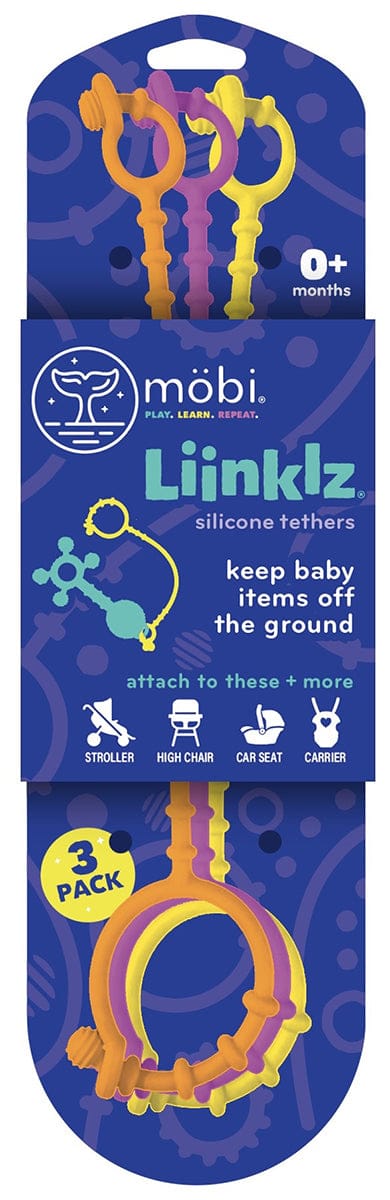 LIINKLZ® are silicone tethers that keep items off the ground. Connect Liinklz to strollers, high chairs, car seats, carriers and more! This 3-pack will keep more of your little one’s prized possessions safe.