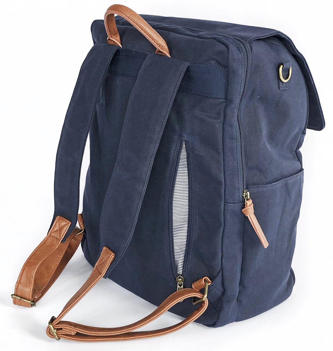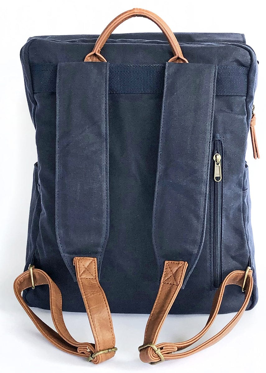 - Strong, durable waxed canvas + vegan leather