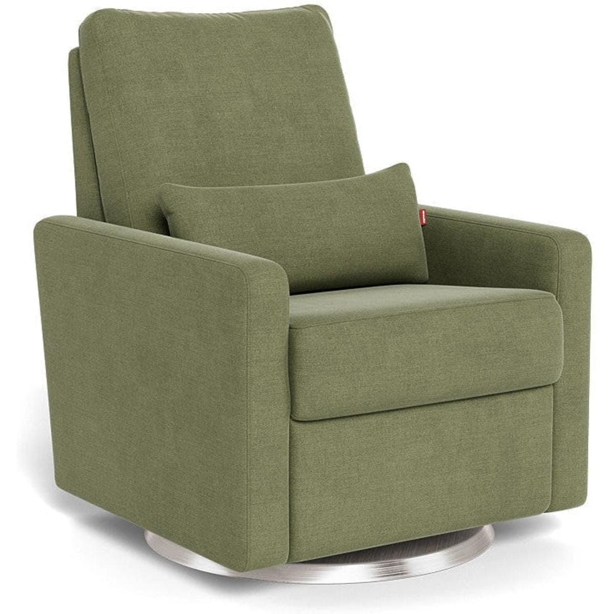 Our new Matera Glider Recliner is the perfect combo of two of our best selling gliders. We took our Grano’s smooth recline and our Como’s pillowy-soft cushions and created the Matera. Sink into the Matera’s plush and luxurious attached back & seat cushions, then spoil yourself by popping up the foot rest and reclining for ultimate relaxation. Resting never felt so good!