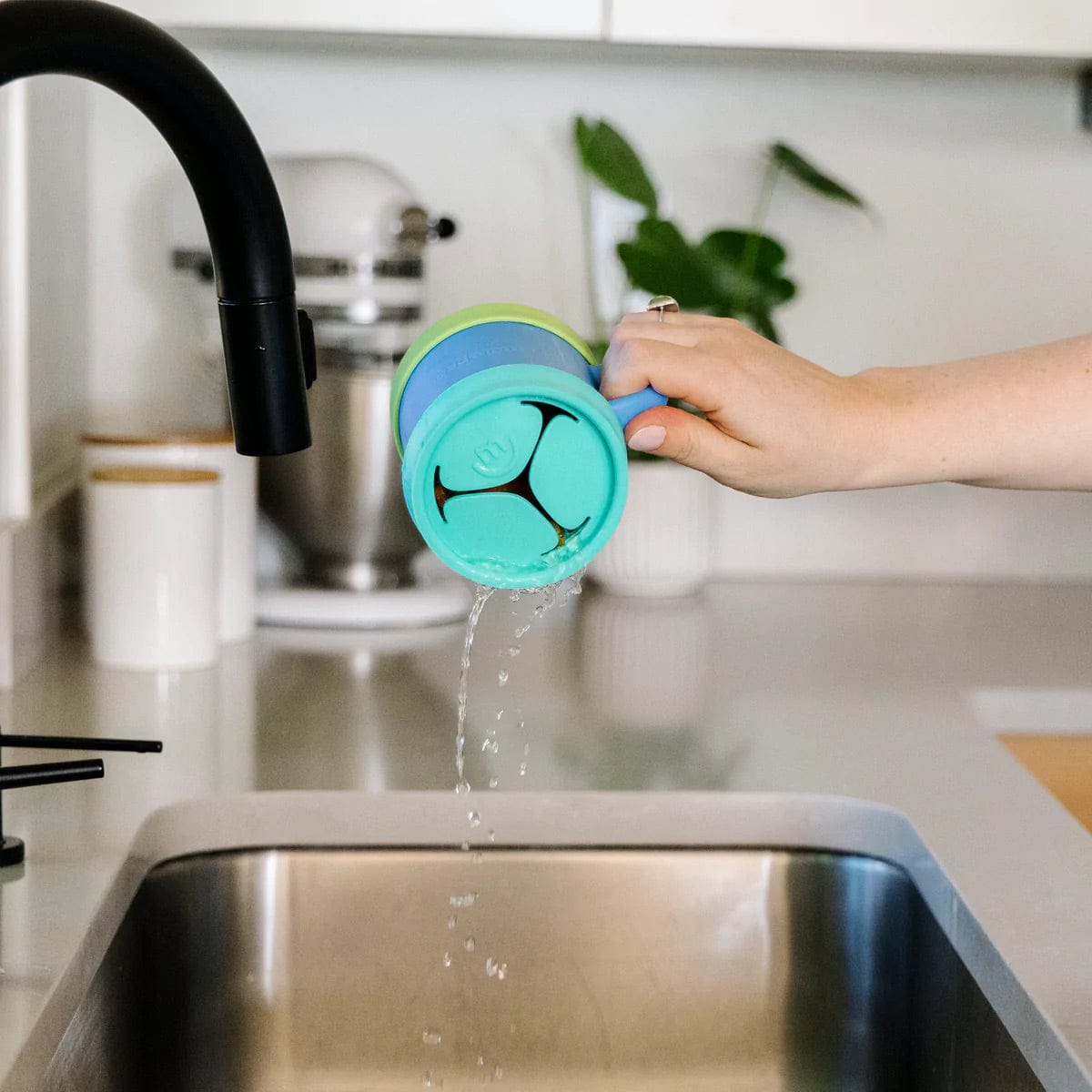 - Spill-proof snack lid with soft opening for little hands
