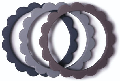 Mushie Flower Teething Bracelet 3-Pack - Steel/Dove Gray/Stone