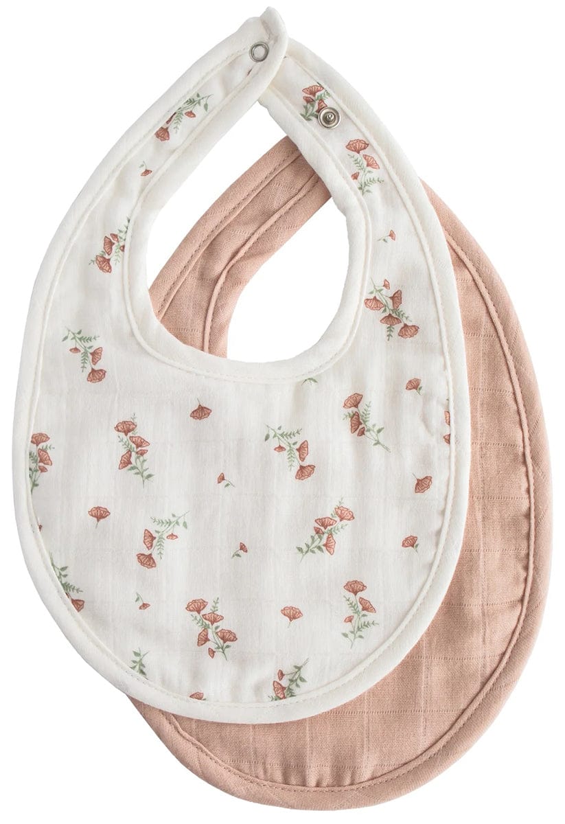 Mushie Muslin Bib, 2 Pack - Blush / Pink Floral