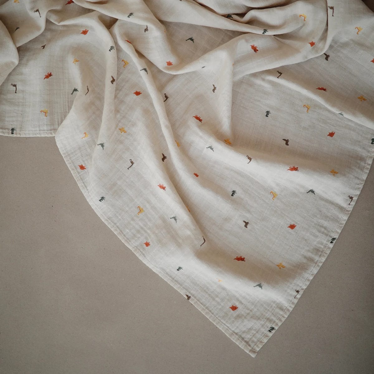 Mushie Organic Cotton Muslin Swaddle Blanket - Dinosaurs