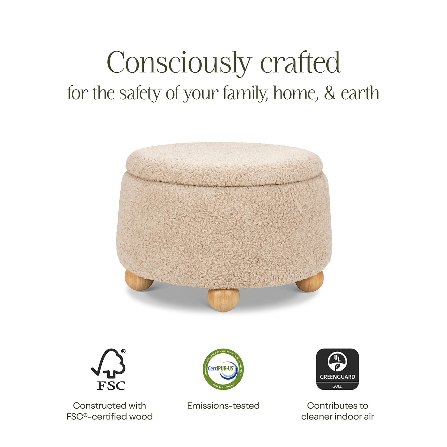 Namesake Tuffet Storage Ottoman - Chai Shearling with Honey Ball Feet