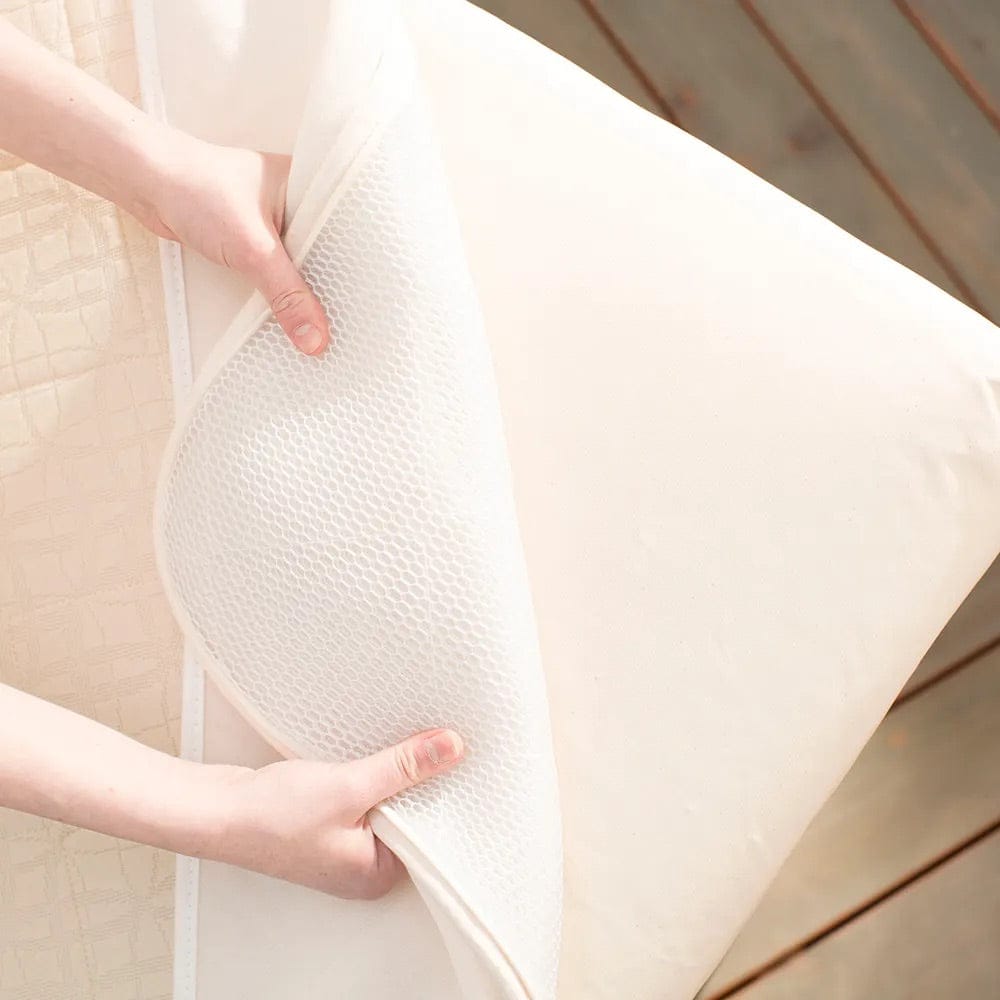 The breathable function is encapsulated in a washable cover that completely hugs the mattress. In the event of an accident, remove the soiled cover and wipe the mattress clean. Replace with a spare cover or put the baby back to sleep on the fully functional underlying mattress. The cover can then be machine washed and dried at your convenience.