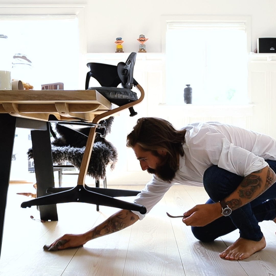 When sitting in either a booster seat or an adult chair with dangling feet, children get fidgety and uncomfortable, making it hard for them to focus on their meal. The Nomi Chair brings your child up to the table and the floor up to their feet, so they are always comfortable, like you are in a regular adult-sized chair.