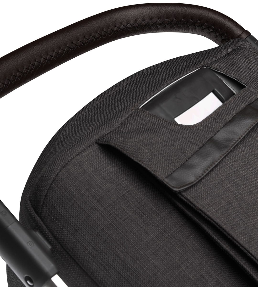 - Luxe hand-sewn leather-look arm bar, push bar, and carry handle