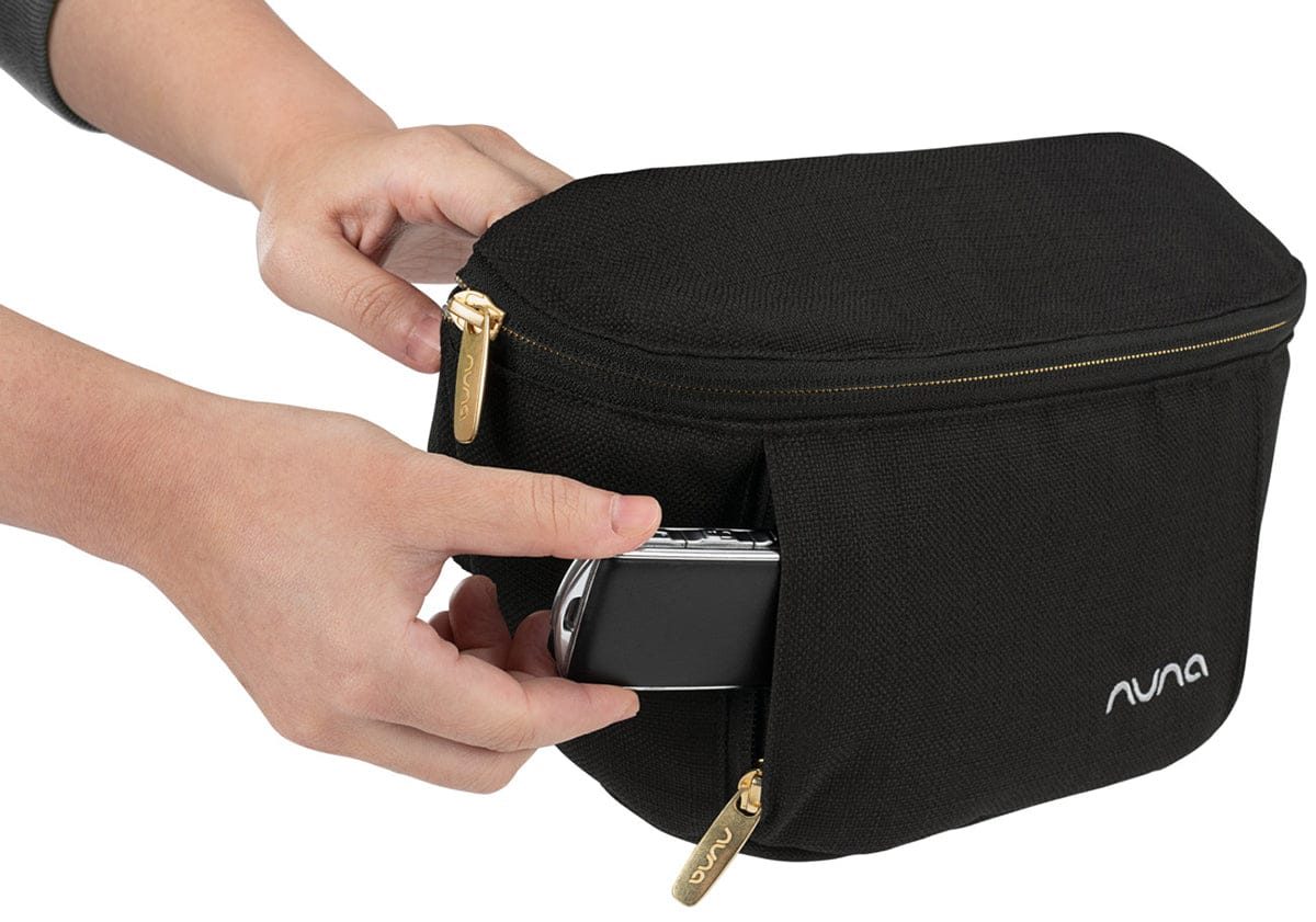 Keep it in reach while on the go. Small in size but big on detail, the Nuna stroller sling bag has six inside compartments and two outside for easy access to essentials. Compatible with all Nuna strollers except the TRVL™, it easily attaches to the push bar, keeping it organized and in reach. A luxe leatherette carry strap quickly converts it to an over the shoulder tote bag. Just attach or remove and go!