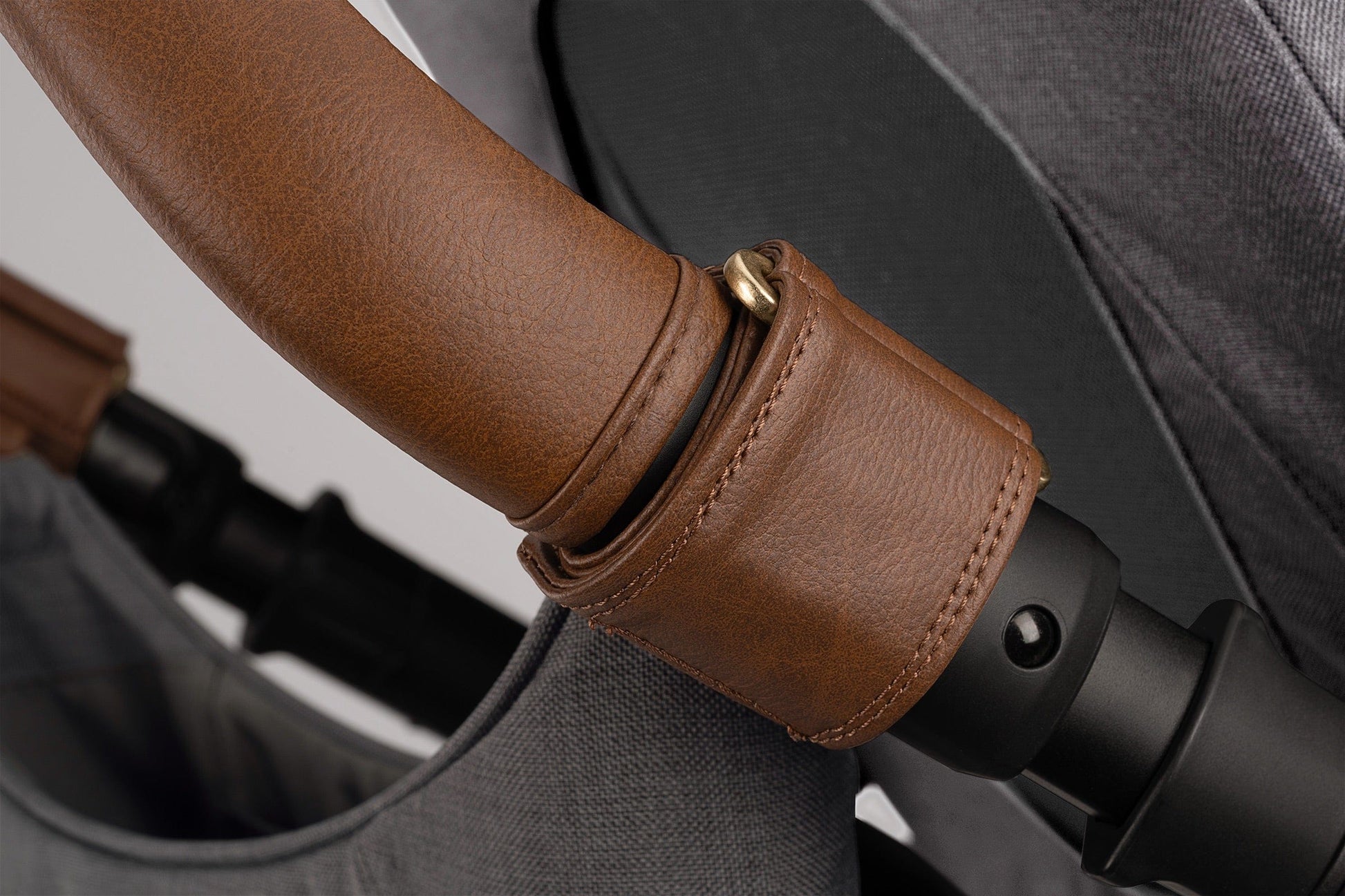 - Leatherette straps securely attach to stroller pushbar keeping it in reach