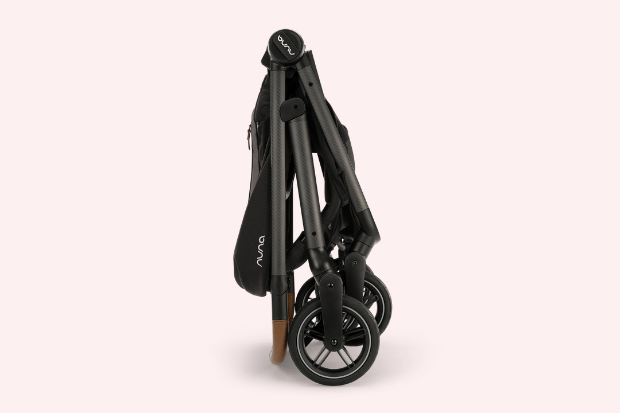 - Folding ring adapter with handle integrates into the stroller for a more compact 1-handed fold that stands on its own