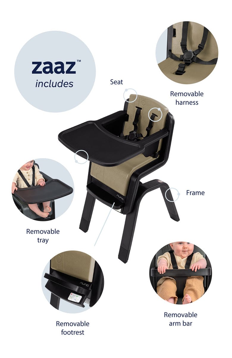 The moment they’re ready, you can be ready for them. The Nuna ZAAZ is more compact than most high chairs, so it’s easier to slide right up to the table. And since food is to kids what paint was to Picasso, we’ve made sure it’s super easy to clean. Wipe ZAAZ down or just remove the parts and pop them in the dishwasher.