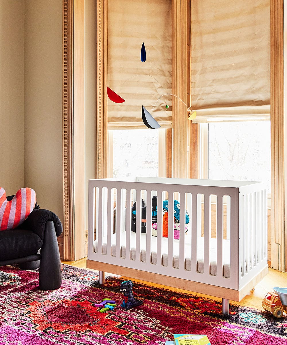 The Oeuf Classic crib was created for parents who appreciate modern design and want the safest possible environment for their baby. With its elegant shape, sleek legs and a matte, warm-white finish, this crib will give your nursery a modern and clean look. Like other European cribs, Oeuf uses fixed side rails for optimal safety. The sides, footboard and headboard are all cut from single pieces of wood panel to eliminate the hazard of loosening joints. All Oeuf cribs are made in Europe to strict environmental standards. In addition, this crib will grow with your family by converting to a toddler bed with the purchase of a conversion kit.
