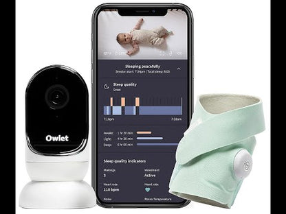 The Dream Duo communicates your baby’s sleep status to the Owlet Dream App and the included bedside Base Station. Both will let you know when your Baby needs your assistance to sleep soundly.