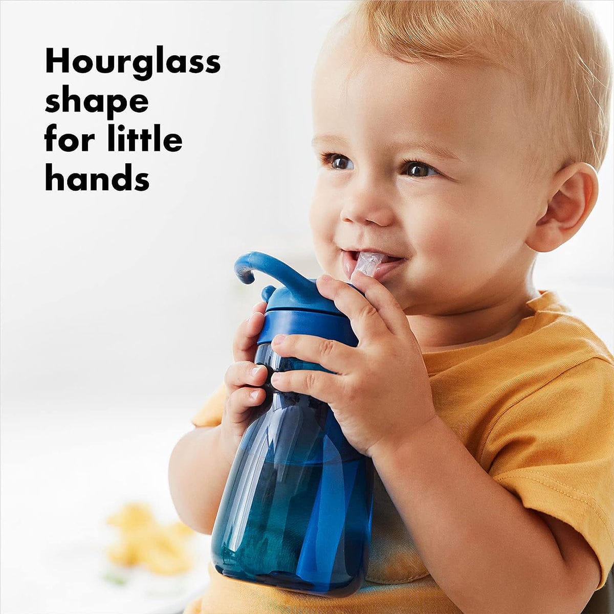 This 12-oz water bottle features our patented, spill-proof straw that minimizes messy leaks, drips and dribbles. The valve opens the moment your tot’s lips touch the straw, so it's easy for kids who want to do it all themselves. The straw lid opens easily for toddlers, while grown-ups will have no trouble separating the two-part hinged cap for a thorough cleaning. The hourglass shape fits just right in little hands. The flexible handle hooks quickly onto diaper bags, backpacks and more to be within reach on every adventure.