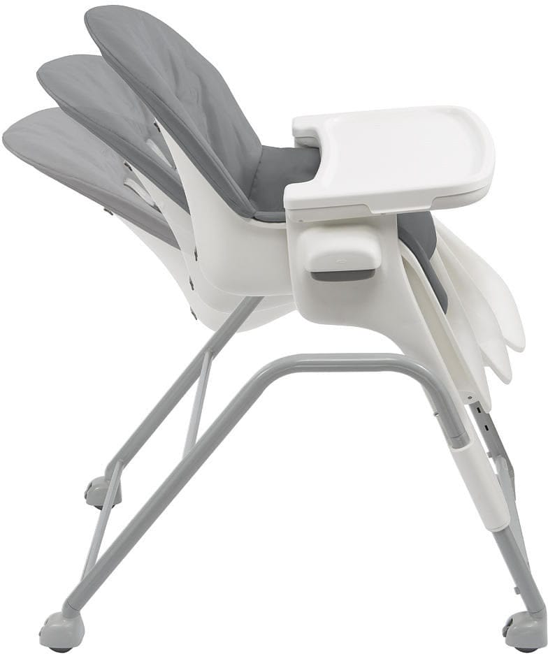 The depth-adjustable tray has different settings to accommodate your growing baby, and stores on the back of the Chair’s legs when not in use.