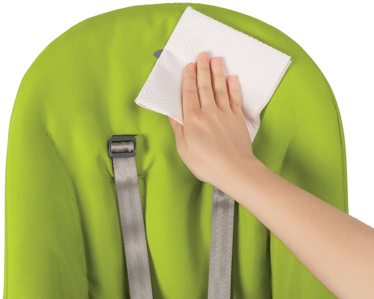 Mealtime can be messy, so the Chair and cushions are easily wipe able for quick cleanup of crumbs and other sticky situations. The removable tray cover is dishwasher safe and the stain-resistant cushion is easily removable and machine washable for those extra-big messes.