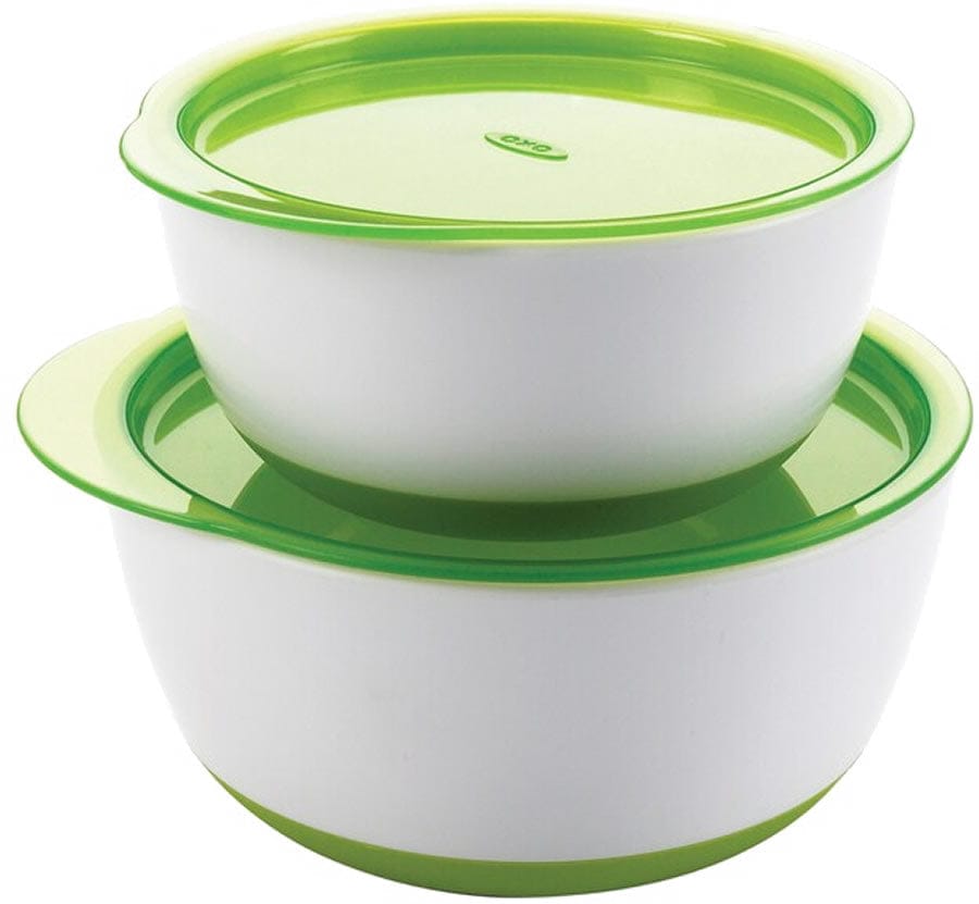 - Small and Large Bowls stack with lids and nest for compact storage.